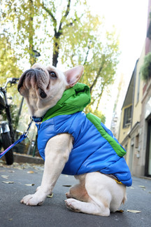 Ad un certo punto, un po’ per spirito ecologico e un po' per la passione per i cani, è nato il progetto di ideare una collezione di cappotti per cani con tessuti di pregio ma al contempo non inquinanti cosí come l’imbottitura dei piumini di materiale avanzato dalle grandi collezioni, totalmente biodegradabile.